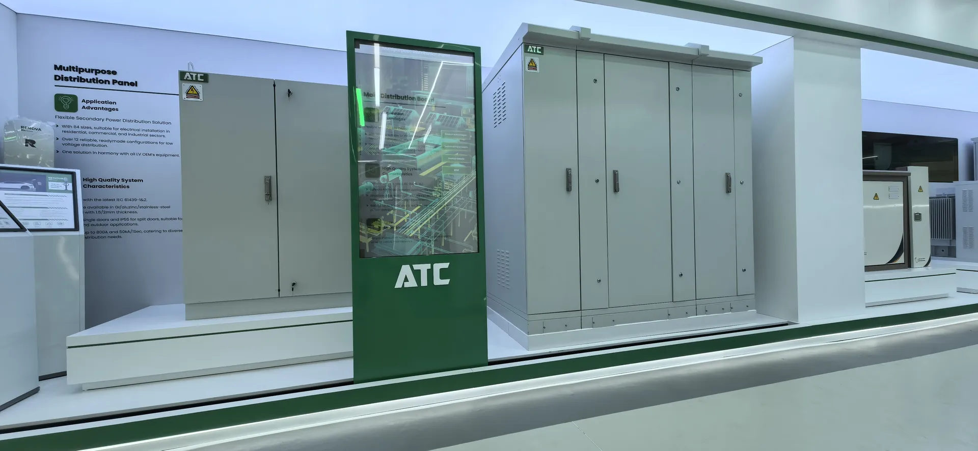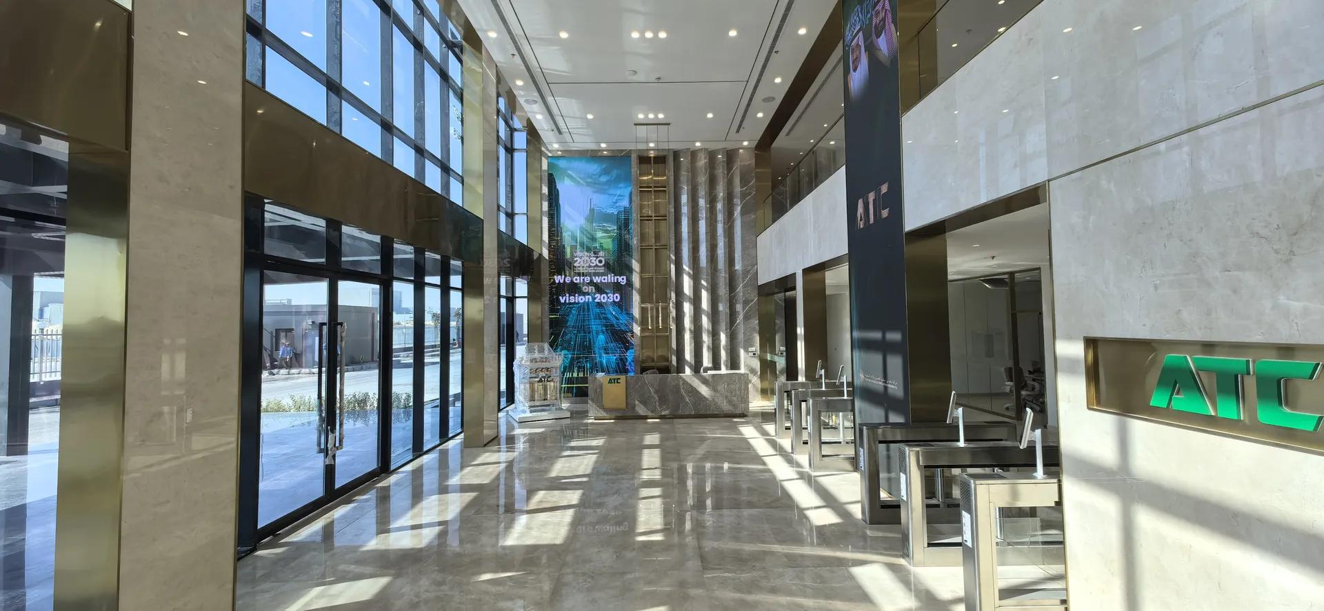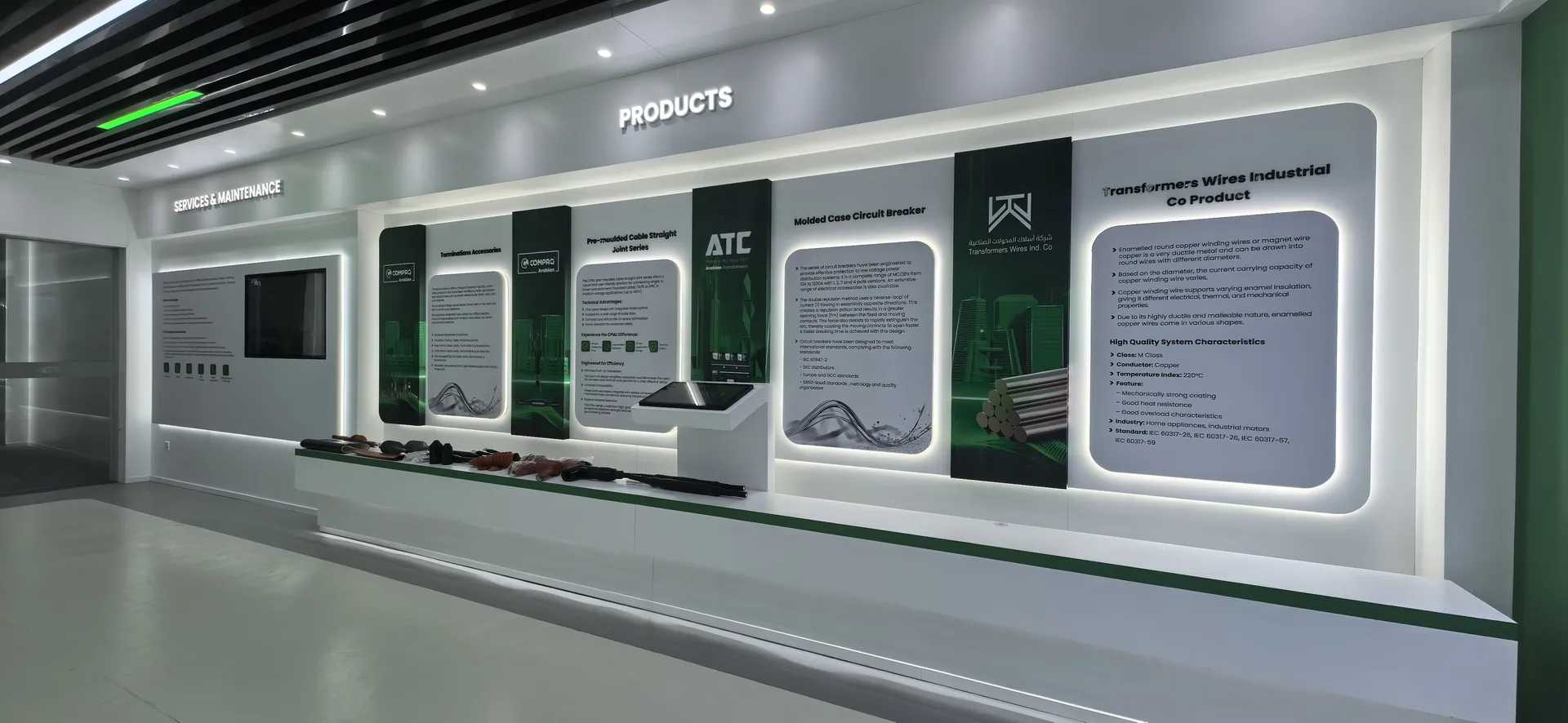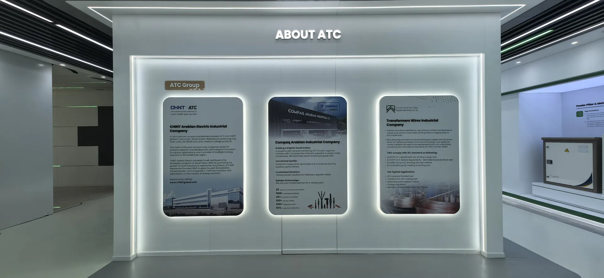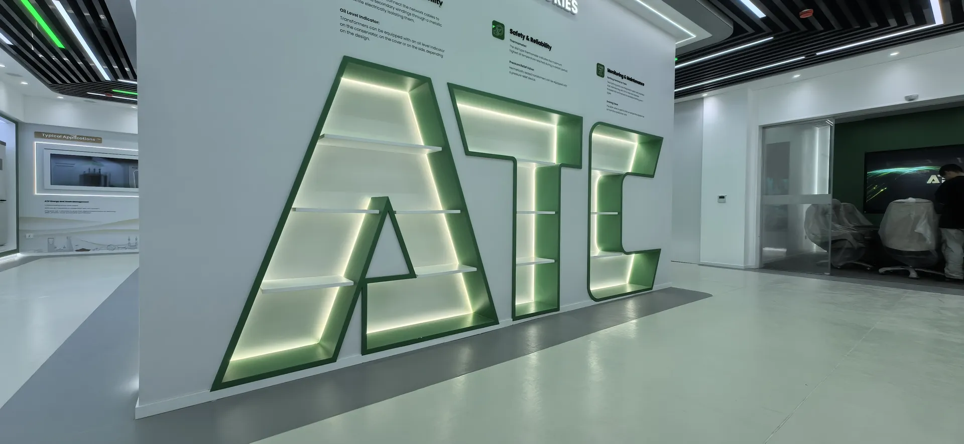 We primarily utilized the brand colors of energy green and sand gold and Saudi buildings’ silhouettes, aiming to create a display environment that not only featured ATC brand identity but also integrated regional cultural elements.