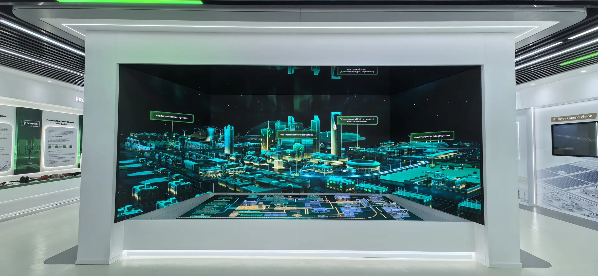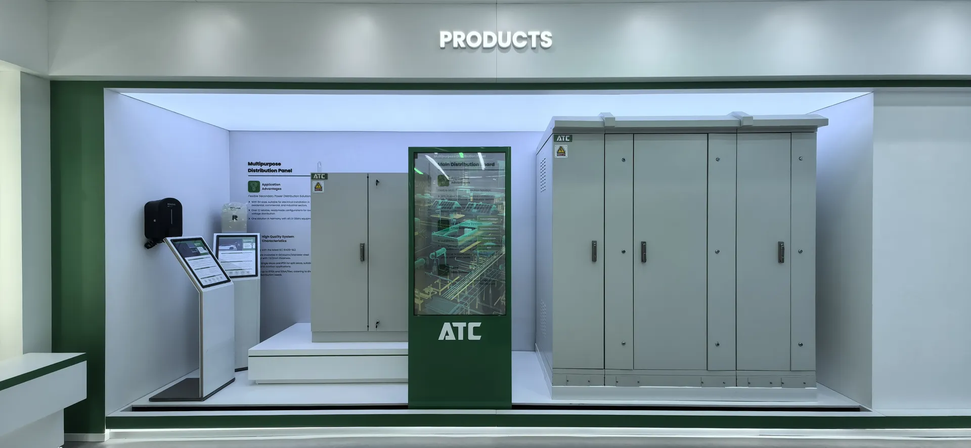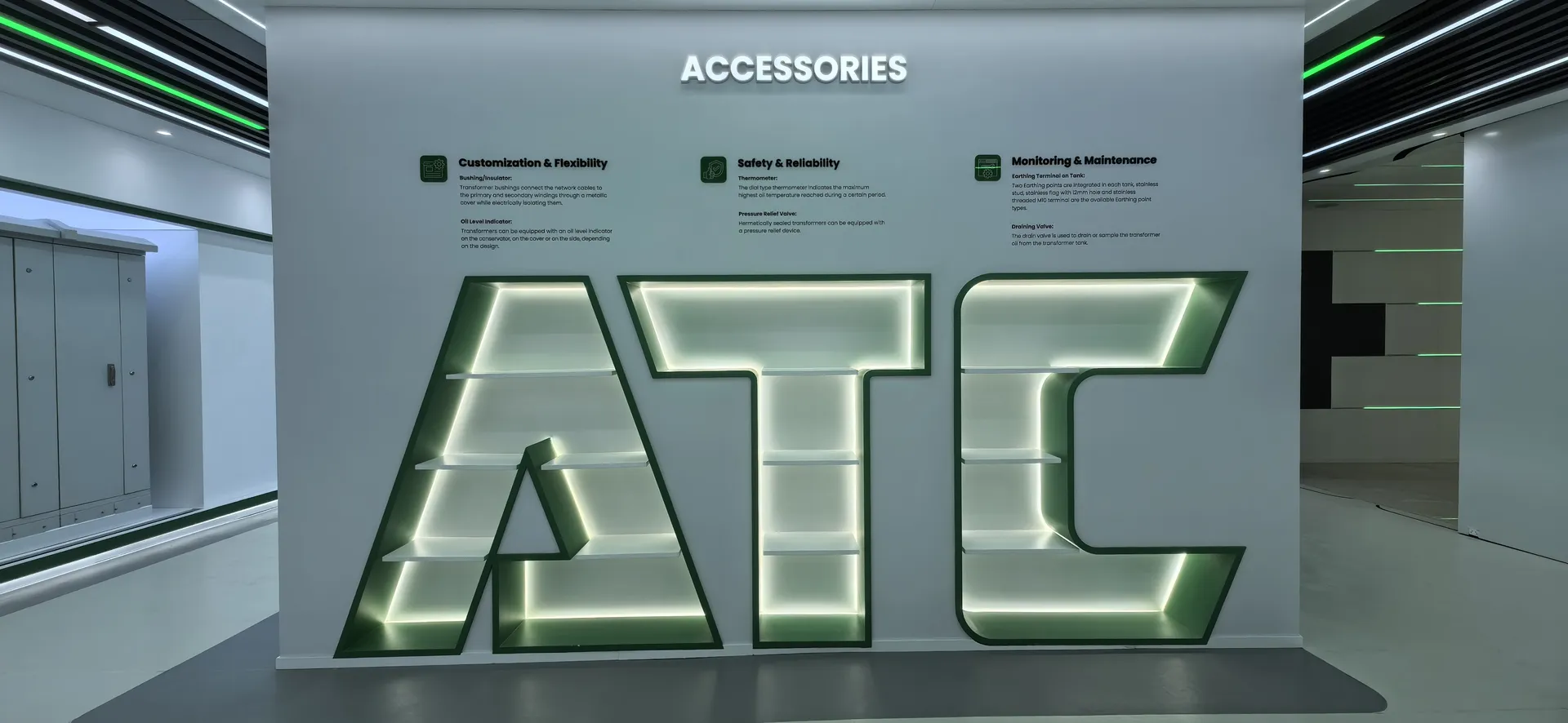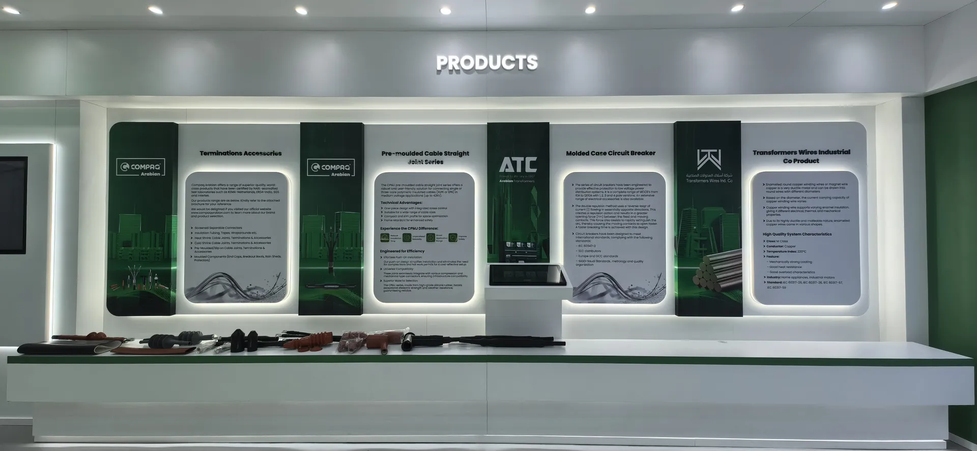 We primarily utilized the brand colors of energy green and sand gold and Saudi buildings’ silhouettes, aiming to create a display environment that not only featured ATC brand identity but also integrated regional cultural elements.