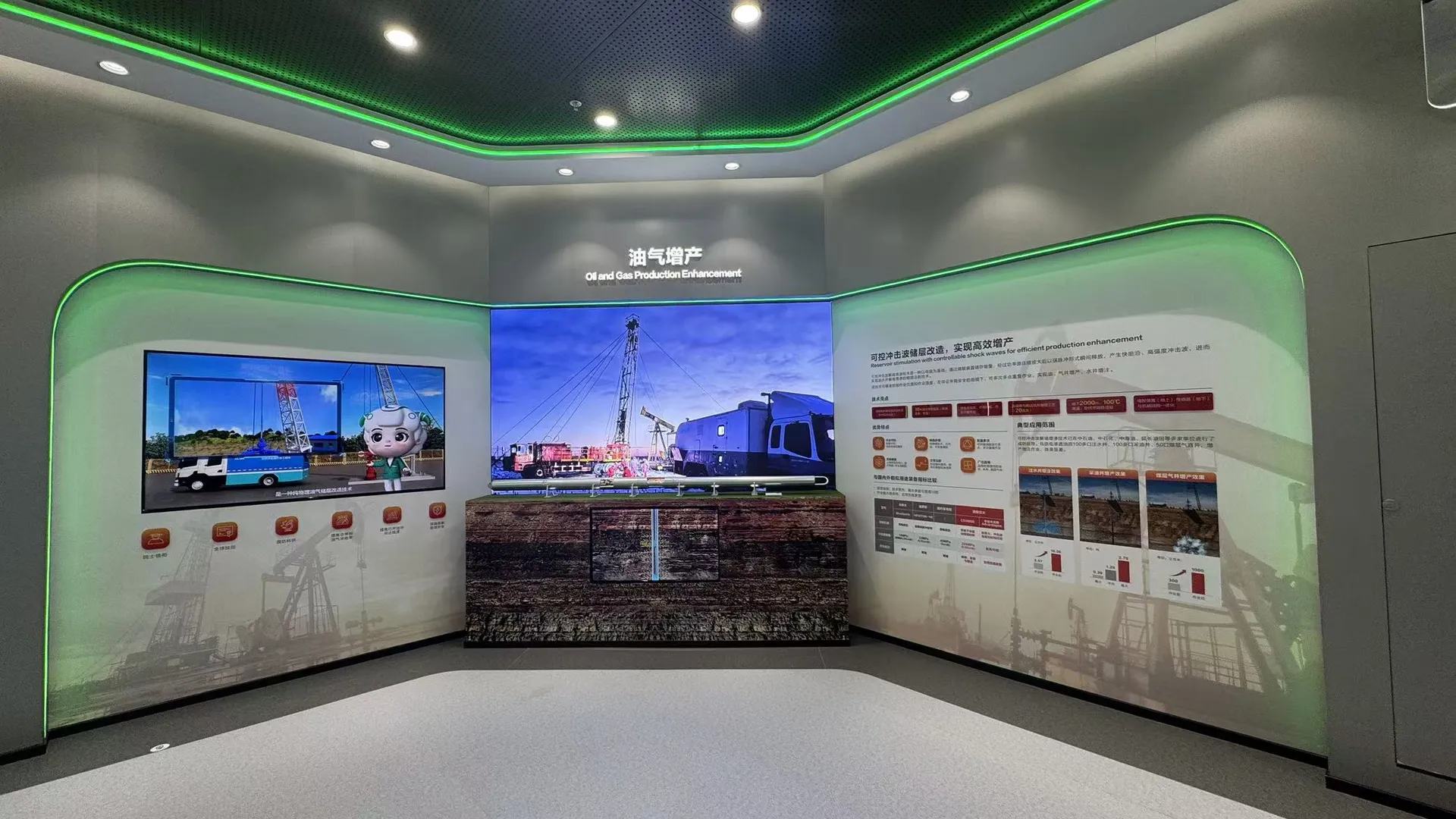 Opaque mode: Plays explainer videos on technical principles. Transparent mode: Reveals the actual equipment with dynamic data projections and lighting. Through the transformation of virtual and real, visitors are guided to gain a deeper understanding of the equipment's operational logic and value.
